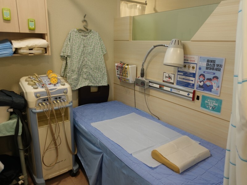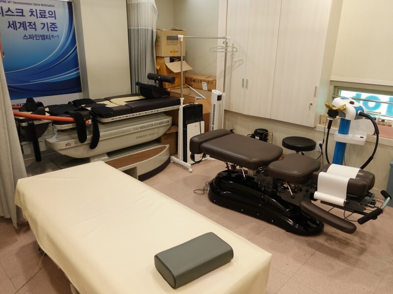 저주파 치료가 끝나면 방을 이동해서 뼈를 교정해주는 치료를 받는데요. 여기가 2차 고문실이고 원장님께서 직접 뼈를 우두둑 우두둑 맞춰주십니다.