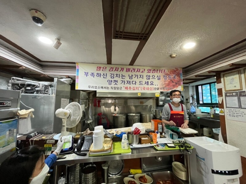가게 전경부터 알 수 있듯이 내공이 쌓인 집이고요. 김치도 잘익어서 칼국수와 먹기에 딱 좋은 식감이었어요.