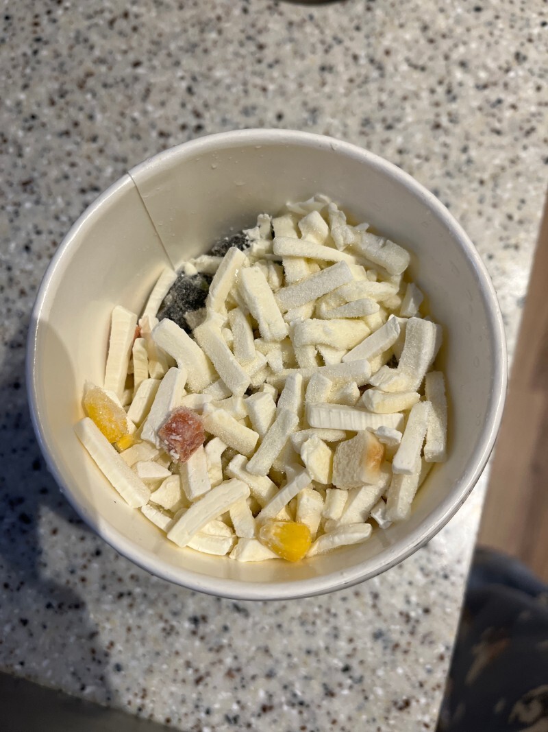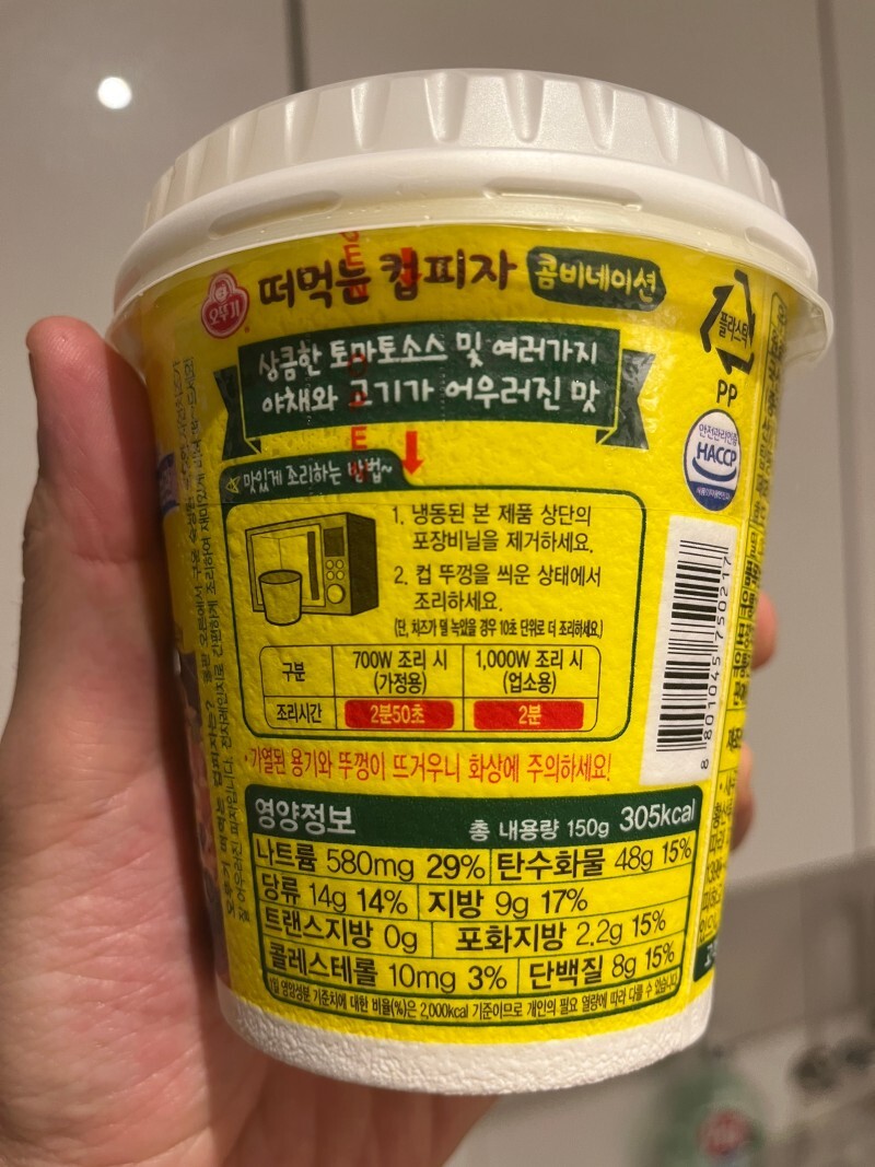방어회를 맛있게 먹고 2차로 방으로 와서 오뚜기 떠먹는 컵피자를 먹어보았습니데이.. 감성적으로 보이는 뒤에 태진아가 보이시나요? ㅎㅎ