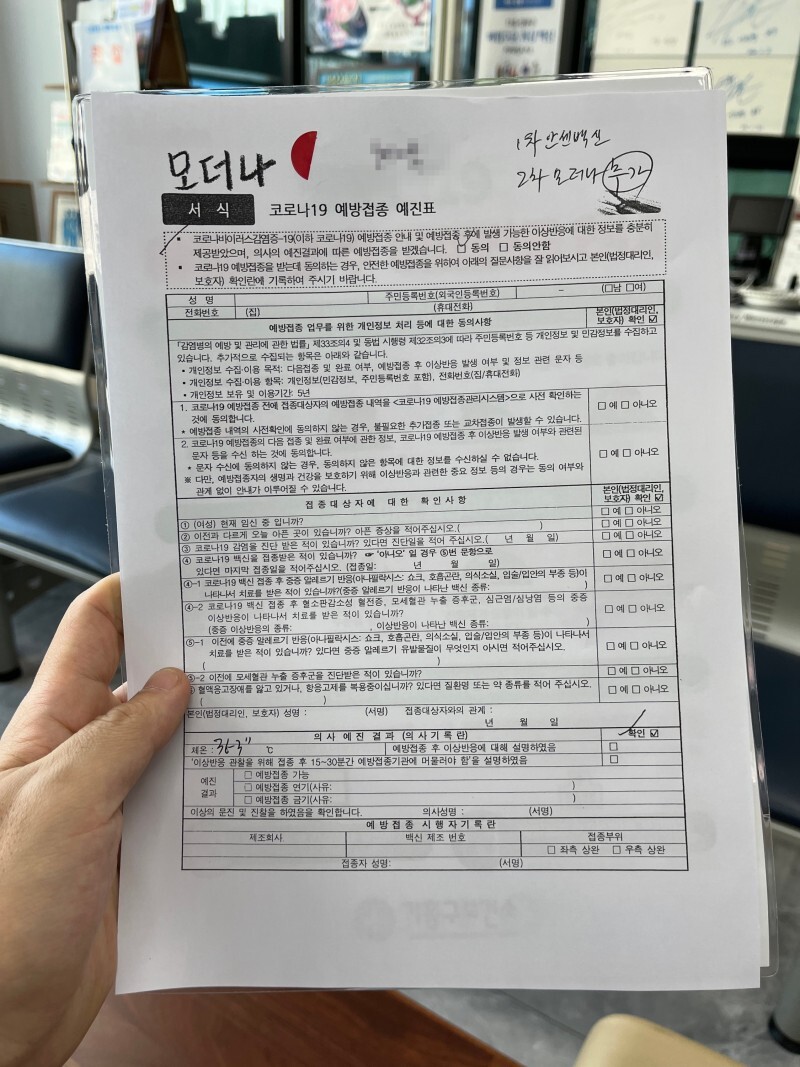 이후에 바로 원장실에서 접종 서식 확인후 바로 모더나 부스터샷을 접종받을 수 있었고요. 하 어렸을때부터 주사가 너무 싫어서 백신 맞는거 너무 무서워요..