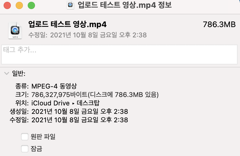 와이파이 연결의 경우에는 약 780MB의 파일을 업로드하는데 6분 정도의 시간이 소요되었고요. 아이폰 핫스팟을 연결했을 경우에는 동일 파일을 업로드하는데 약 18분~20분정도의 시간이 소요되었습니다.