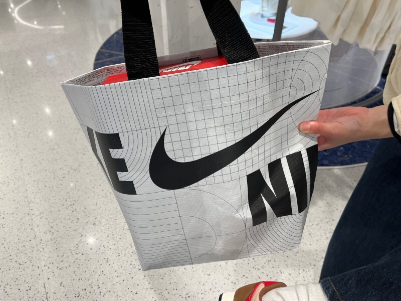 제가 간지나는 쇼핑백에 담아달라고했더니 직원분께서 이렇게 리유저블 쇼핑백에 담아주셨습니다. 나이키 리유저블 쇼핑백이 요즘 품귀현상이 나서 못산다는 얘기가 있을만큼 인기있는 아이템이라는 사실을 오늘 알았어요.