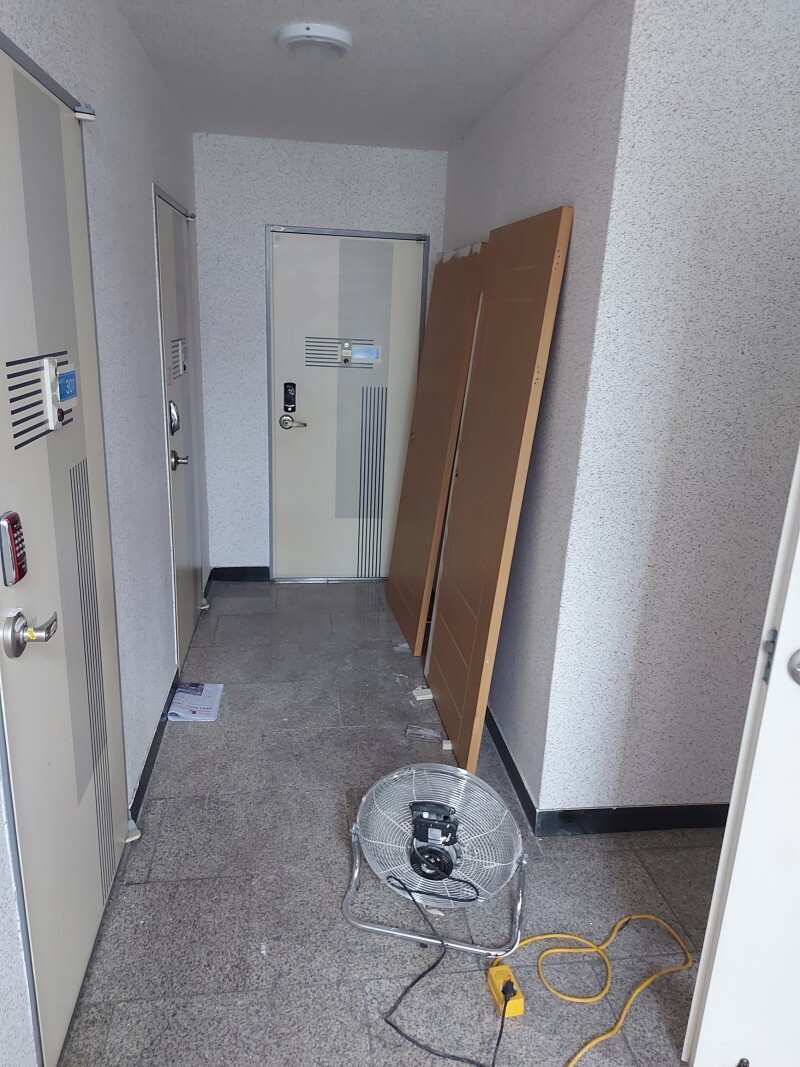 작업기간은 이틀정도가 소요되었고요. 일반적인 문짝이 아니라 음각(?)이 있는 문이어서 샌딩작업과 빠데로 평탄화 작업까지 해야했기때문에 시간이 좀 더 많이 들었던 것 같아요.
