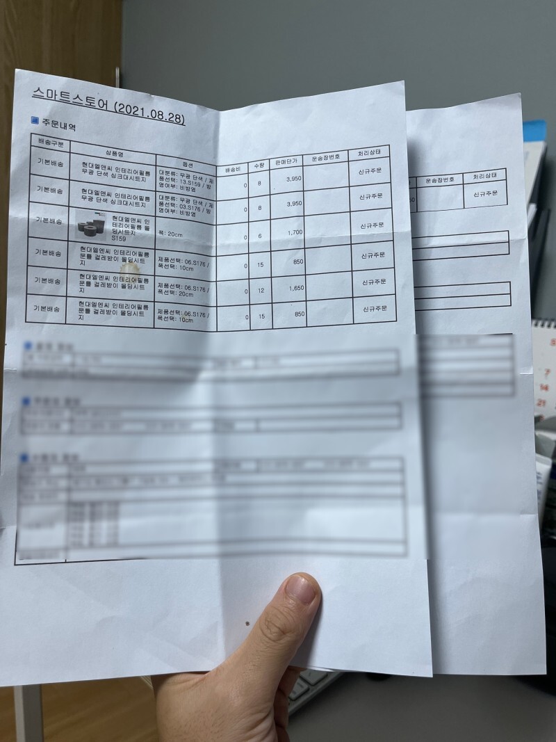 샘플로 시트지를 어떻게 받느냐? 하면 게시판에 저의 주소와 함께 시트지 모델명을 기입하면 우편으로 보내주는 식으로 진행되었습니다.