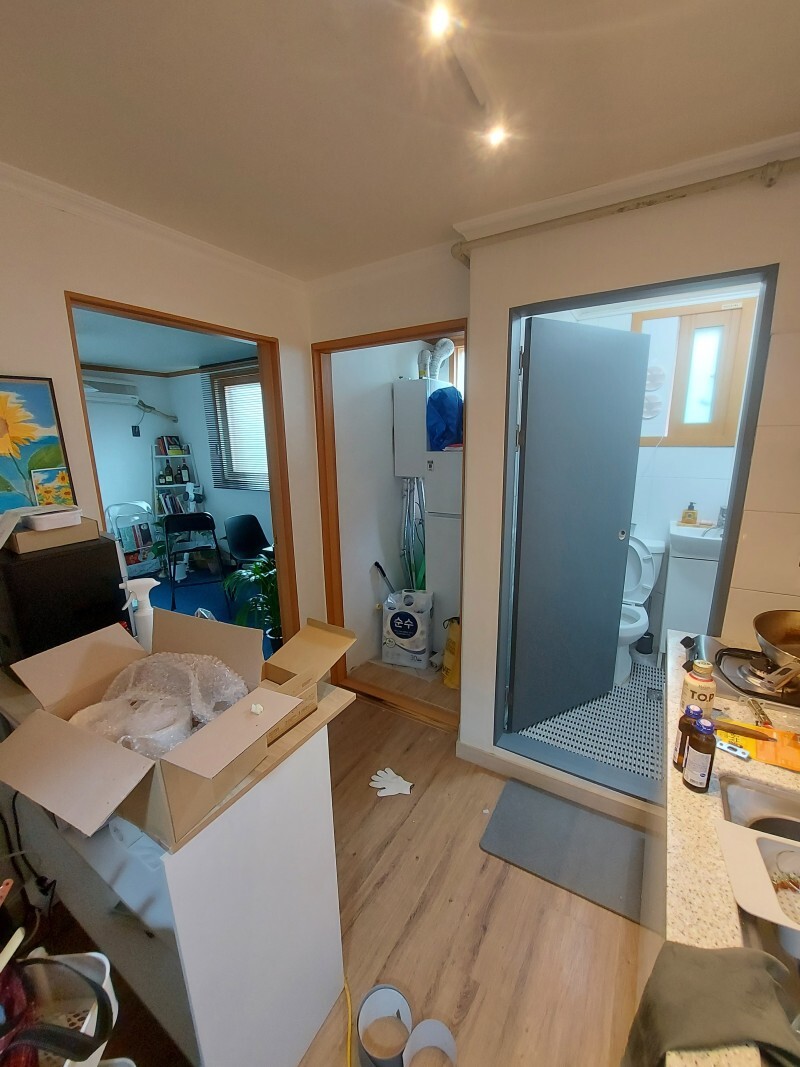 점점 구색을 갖추어가고있는 집 내부의 모습.. 벌써 화장실 문짝 하나만 바뀌었는데도 집 안의 분위기가 확 바뀐것을 확인할 수 있어요.