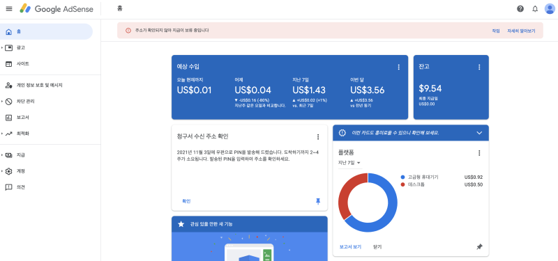 드디어 광고비를 인출할 수 있는 완전한 애드센스 계정이 되는 것이죠.