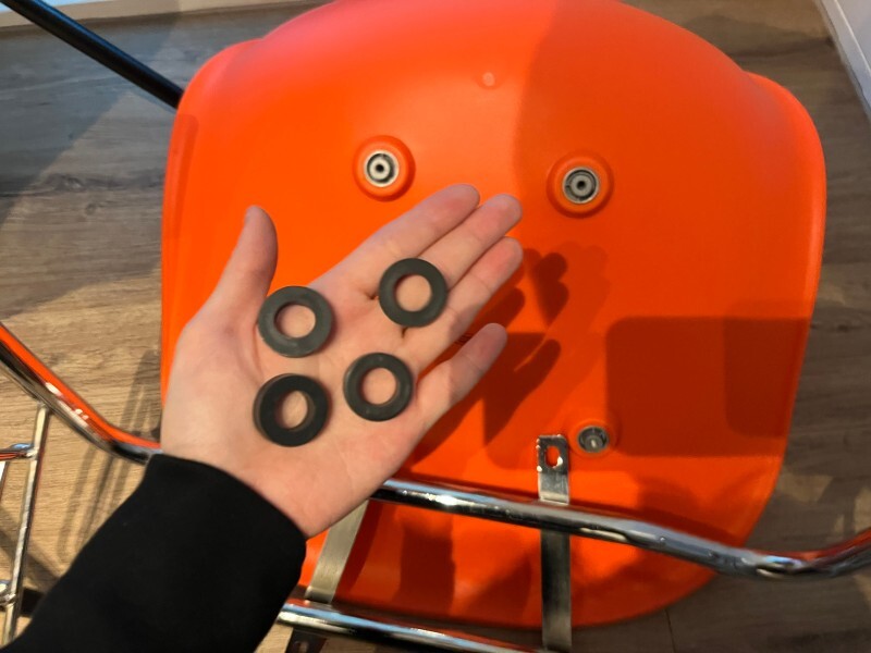나사와 고무패킹이 들어있는데요. 먼저 고무패킹 4개를 의자좌석 아래에 나사선에 올려줍니다.