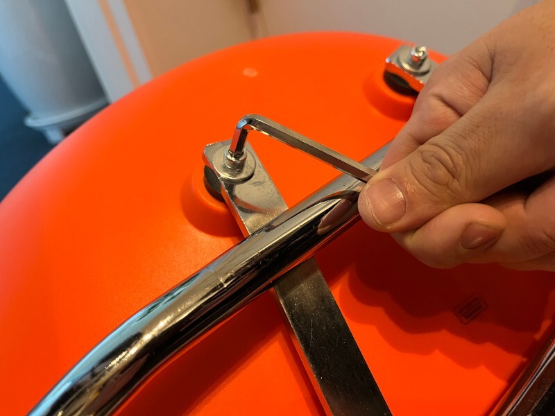 순서대로 4개의 나사를 모두 끼워주었다면 동봉되어있는 육각렌치로 끝까지 철제의자 다리가 좌석에 잘고정될 수 있도록 조여줍니다!