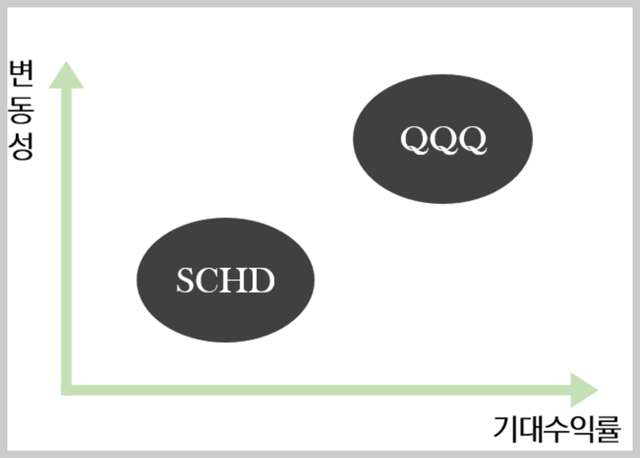 SCHD와 QQQ를 50:50으로 설정해도 좋다.