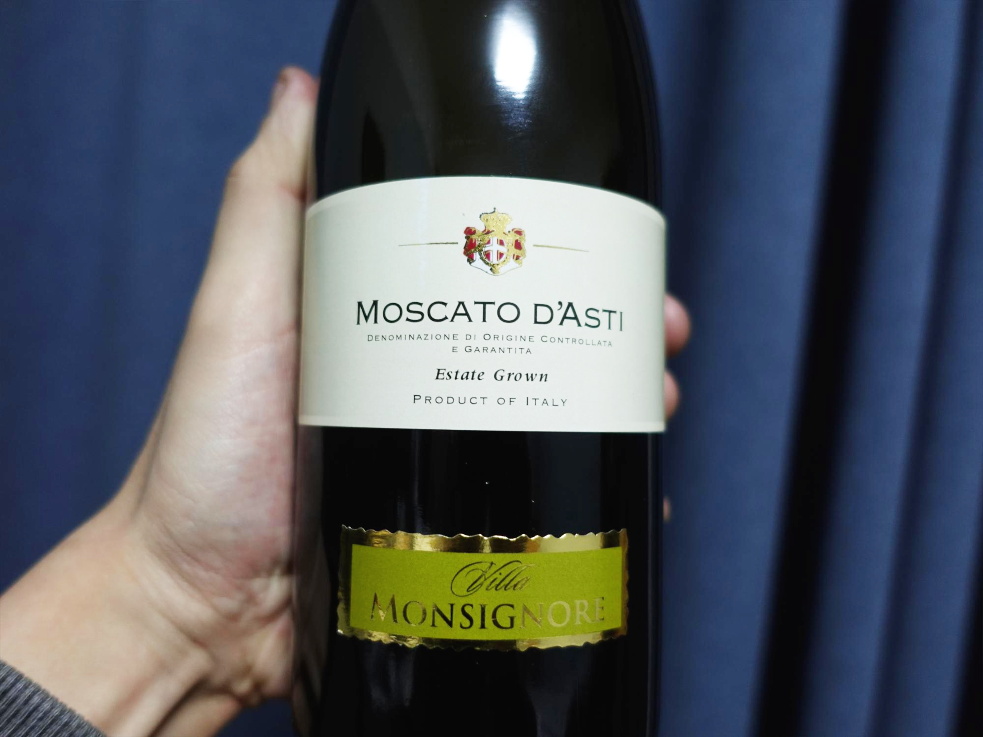 레이블에는 모스카토 다스티라는 레터링이 가운데에 박혀있구요 그 위로 가문의 문양이 그려져 있습니다. 이탈리아 아스티 지방은 양질의 모스카토 와인을 양조하기 때문에 모스카토 품종중에서 아스티 지방에서 나오는 와인만 모스카토 다스티라는 이름을 달고 판매할 수 있는데요. 때문에 몽시뇨레 모스카토 다스티 역시 큰 고민 없이 구매할 수 있는 와인이었습니다.