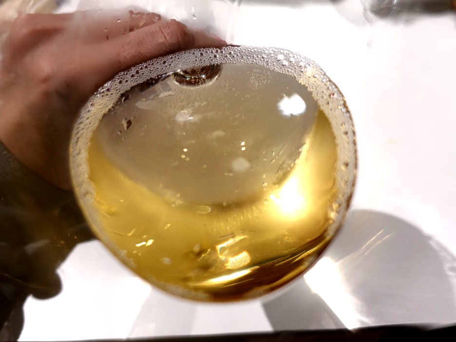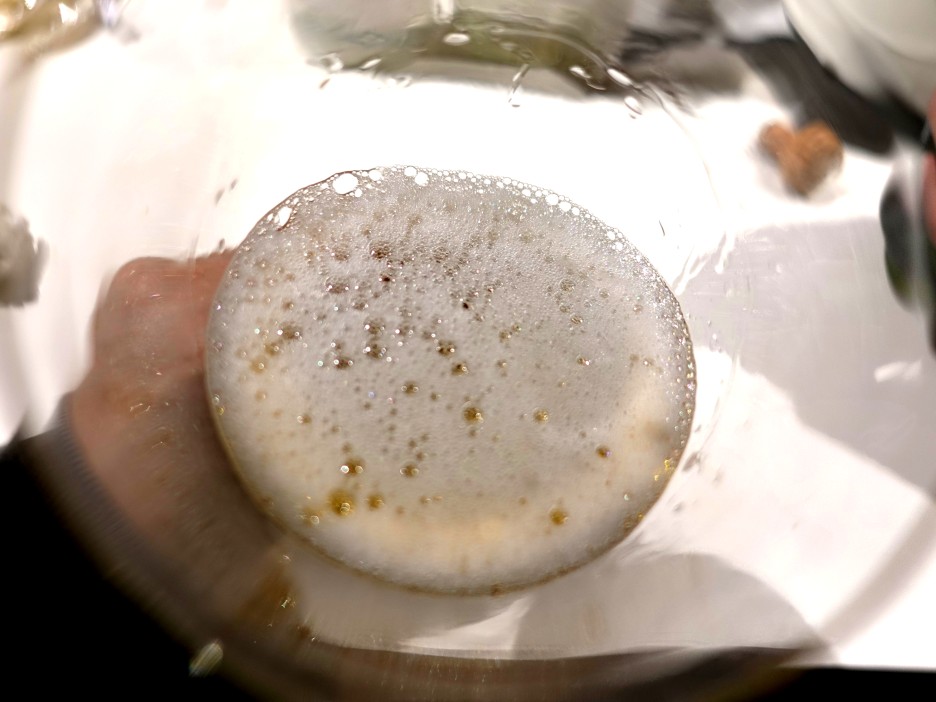 처음 따랐을때의 모습이구요. 색상자체는 금빛의 영롱한 색상이었구요. 기포가 자글자글해서 목 넘김이 상당히 부드러웠습니다.
