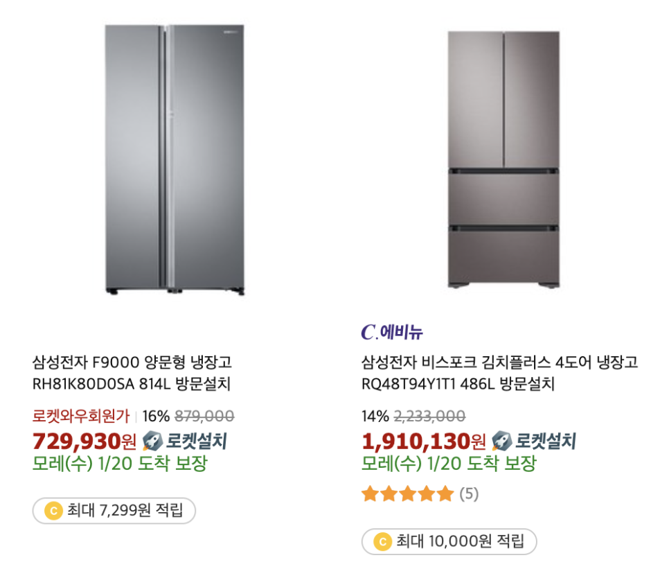 일단 현재 냉장고 제품들이 우선적으로 15%할인이 들어가고