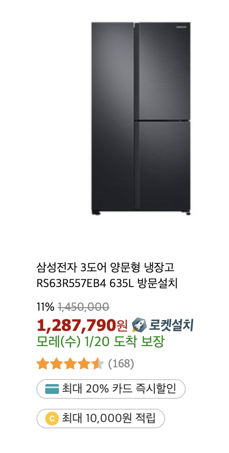 여기서 포인트는 제품 하단에 아래와 같이 카드 즉시할인 정보가 적혀있는 상품들이 있는데