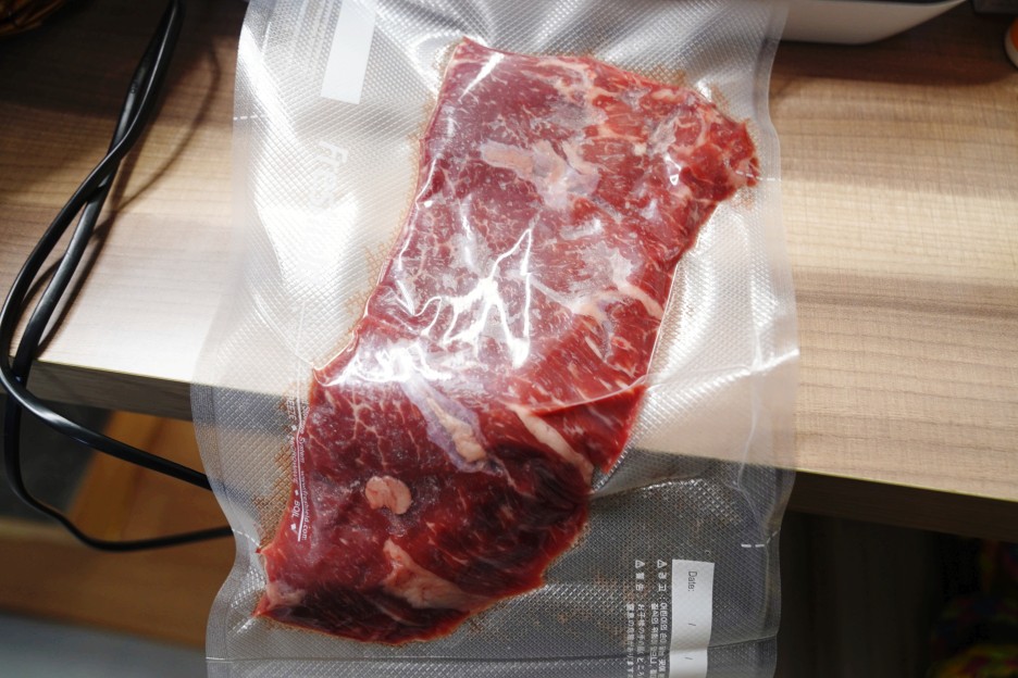 이 날 고기는 이마트 트레이더스에서 1kg 짜리 미국산 살치살을 구매했구요. 가격은 35,600원으로 100g당 3560원 정도의 저렴한 가격으로 구매했어요. 고기는 이렇게 소분해서 당일날 조리하지 않는 고기는 진공포장기로 포장해서 냉장고에 보관해 두었습니다.