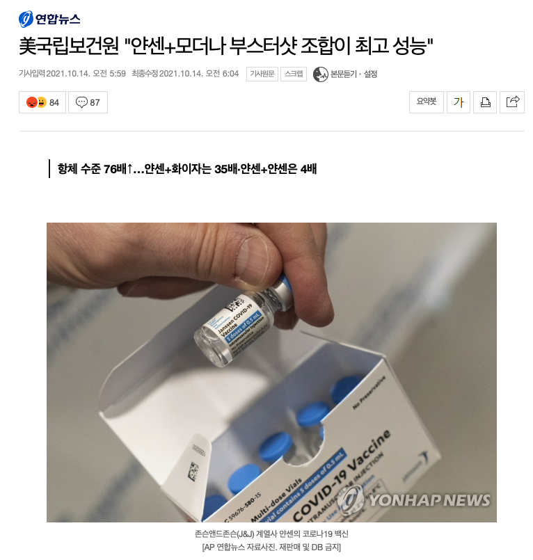 다만 접종후에 어느정도 시간이 지나면 백신의 면역반응이 많이 떨어지기 때문에 지금은 부스터샷을 맞아야 한다는 미국 국립보건원의 공식입장이 뜬 상태이고요.