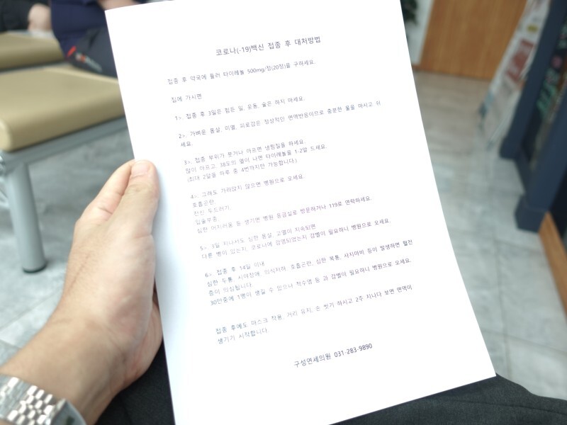 이렇게 왼쪽 어깨에 주사를 맞게 되었구요. 얀센 괴담도 돌아서 걱정했지만(맞으면 황천길을 보고온다..등) 맞을 당시에는 별로 아무렇지 않아서 잉 뭐지? 했던 기억이 있습니다. 하지만 그날 밤 백신접종을 바로 후회하게 되는데..