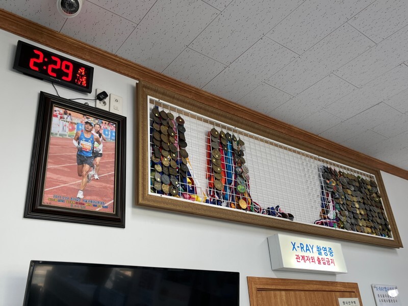 접종후 15분정도 알레르기 반응이 없는지 대기하다가 가라고해서 병원 원장님 마라톤 메달딴거 보면서 15분동안 앉아 있었습니다. 근데 메달이 뭐 저렇게 많냐..