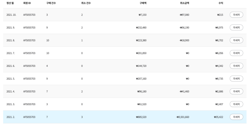 참고로 1월달에 갤럭시S21 링크를 계속 노출시켰을때 수익이 3만5천원정도 되었으니..(오른쪽 취소 금액이 아깝긴하네요.) 역시 금액이 큰 제품포스팅과 쿠팡파트너스 링크가 연동이 가장 수익률을 많이 남길 수 있는 방법이 아닐까 생각이 듭니다.