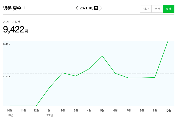 대충 5월 정도에 블로그 포스팅을 잠시 내려놓고 현업에 집중하던 시기가 있었는데요. 그로부터 5개월 뒤인 10월 중순부터 다시 포스팅을 열심히 작성하고 있습니다.