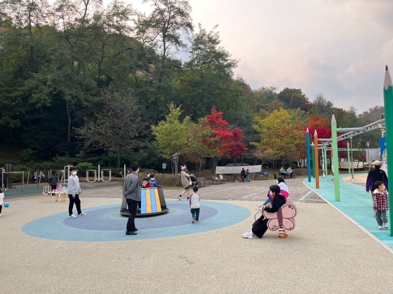 아이들이 정말 많이 부모님이랑 함께 왔더라고요. 이미 돗자리를 깔고 나들이 온 분들도 많고 아이들 웃음 소리도 많이 들리고.. 약간 코로나 전으로 돌아간 느낌도 많이 받았던 것 같아요. 평화로운 용인..ㅎㅎ