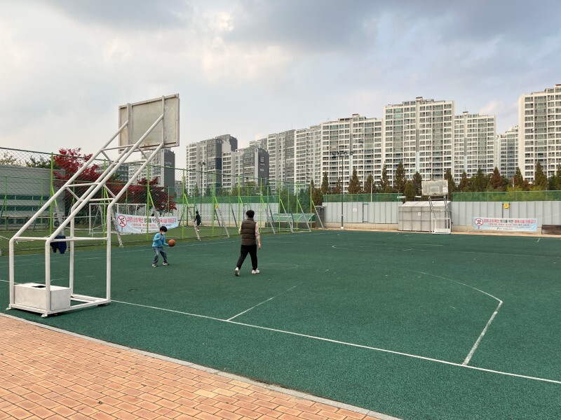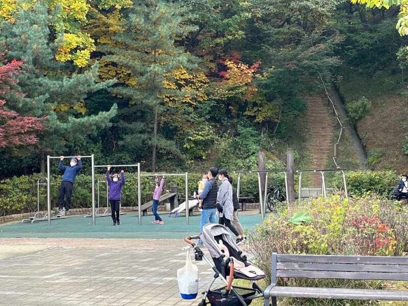 안으로 들어가면 공원같은 큰 공간이 나오고 놀이기구와 운동할 수 있는 운동기구들이 많이 들어서 있었어요. 날씨가 너무 좋아서 주변에 거주하는 시민들이 많이 나와있더라고요.
