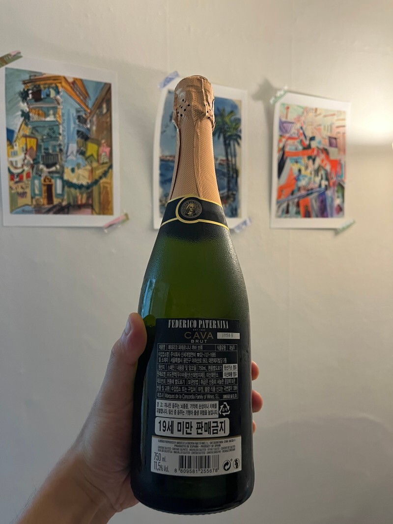 오늘 리뷰할 와인은 페데리코 파테르니나 까바 브뤼 2018으로 이마트에서 구매할 수 있구요. 가격은 7천원대에 구매했습니다.