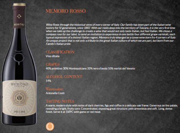 - 품종 : 프리미티보 (40%), 몬테풀치아노 (30%), 네로다볼라 (20%), 메를로 10%