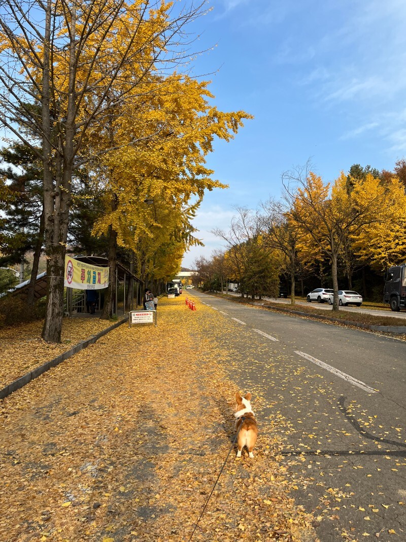 지금은 비가와서 모두 떨어진 경찰대학 가는 길목의 은행나뭇잎들. 바스락 바스락 하늘이가 은행잎 밟는 소리가 나네요. 지금은 이전한 경찰대학이지만 이 구 경찰대학 건물은 아직 남아있기때문에 주변 거주하시는 분들이 많이 찾는 장소입니다.