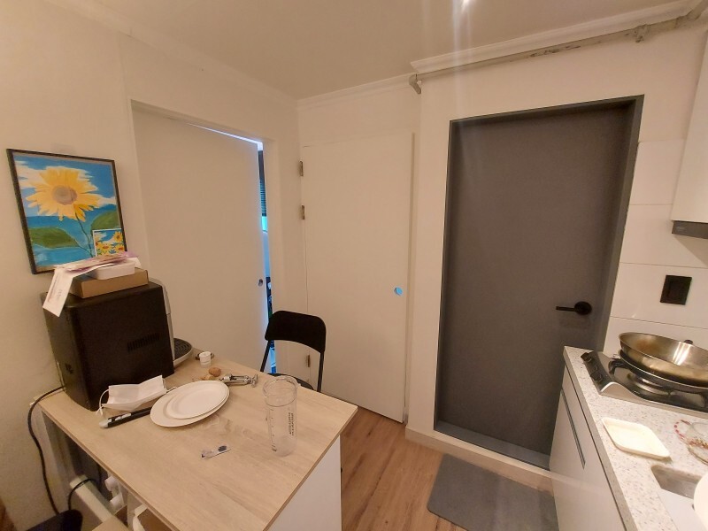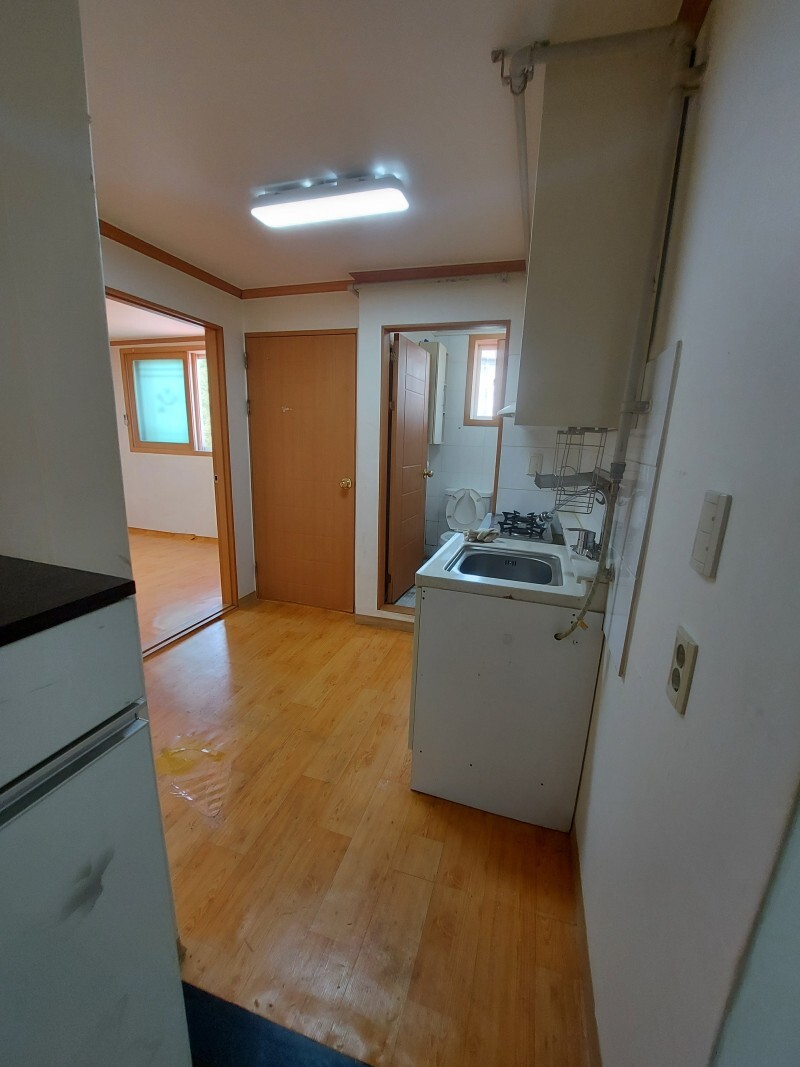우선 저 눈에 보이는 나무색들은 모두 흰색으로 바꾸자! 하는 색각으로 작업을 시작했고요. 다행히도 집주인 아저씨께서 정말 좋으신 분이라 제가 도배를 하는 조건으로 바닥장판과 싱크대를 교체해주시기로 하셨어요.