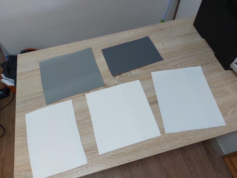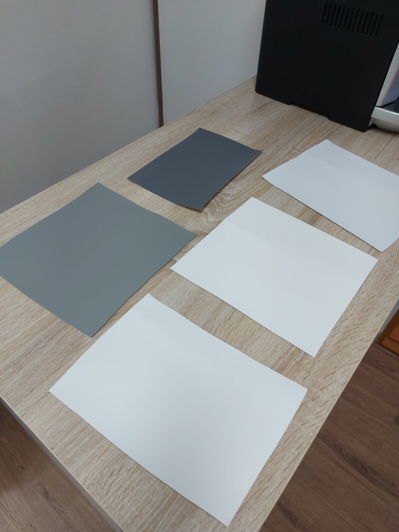 저는 총 다섯종류의 시트지 샘플을 아프로시트에서 받아보았고요. 그중에서 화이트 세 종류와 그레이 두 종류를 받아보았어요.