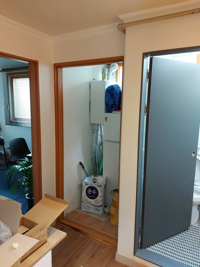 점점 구색을 갖추어가고있는 집 내부의 모습.. 벌써 화장실 문짝 하나만 바뀌었는데도 집 안의 분위기가 확 바뀐것을 확인할 수 있어요.