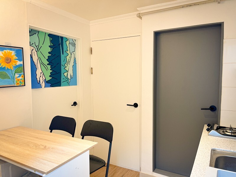 그래서 집 전체를 흰색 장폭합지로 싹 둘러서 도배를 하였고요. 장판은 기존 장판보다 더 톤 다운된 색깔로 주인 아저씨께서 갈아주셨습니다.