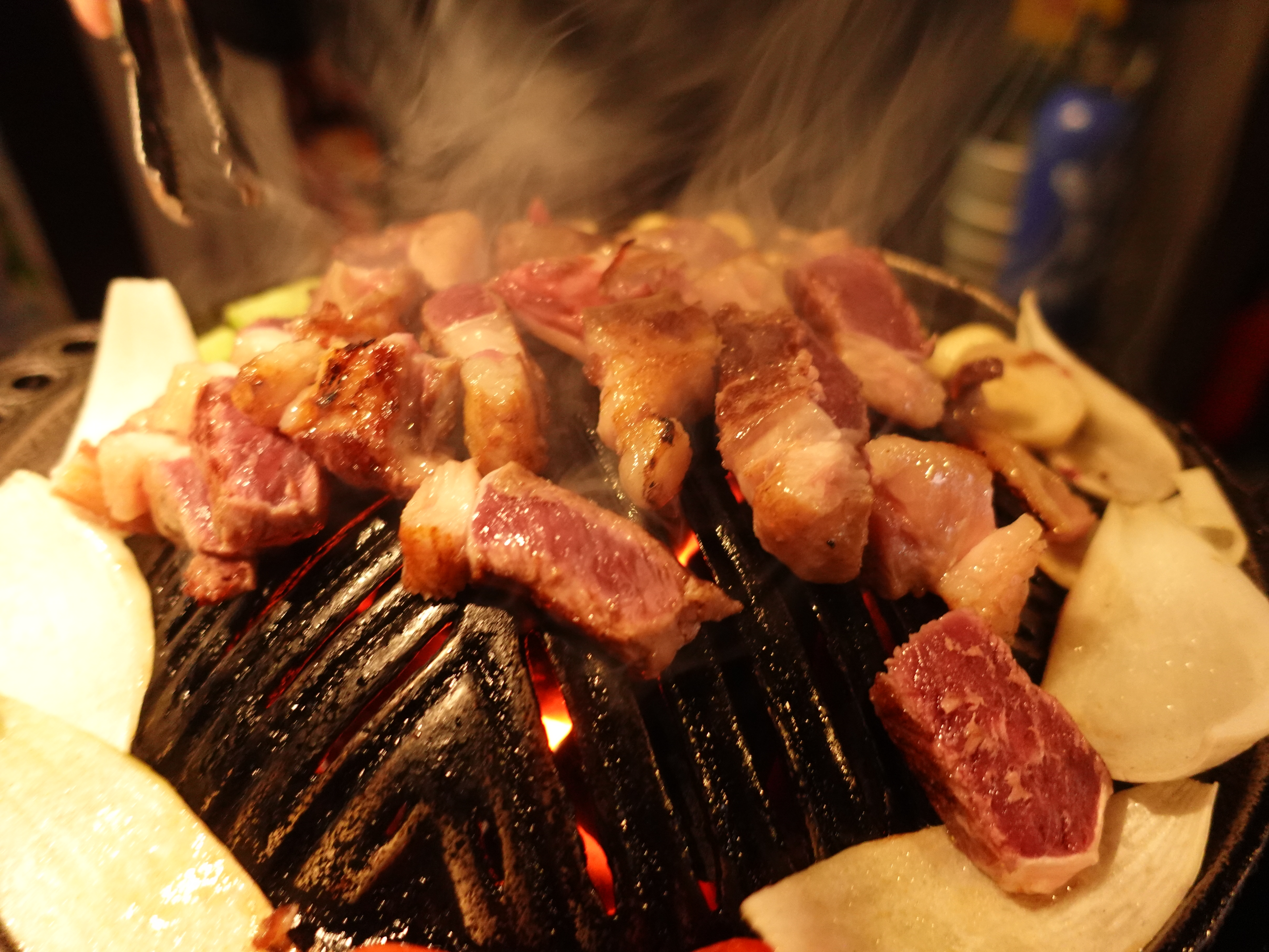 덕분에 요렇게 친구와 한 병씩 와인을 들고 갔구요. 이 날은 프렌치렉과 양갈비를 주문해서 먹었습니다. 주문하면 바로 앞에 있는 화로에서 고기를 올려주고 종업원 분들이 직접 구워서 앞접시까지 놓아주셔서 편하게 고기를 먹을 수 있었습니다.