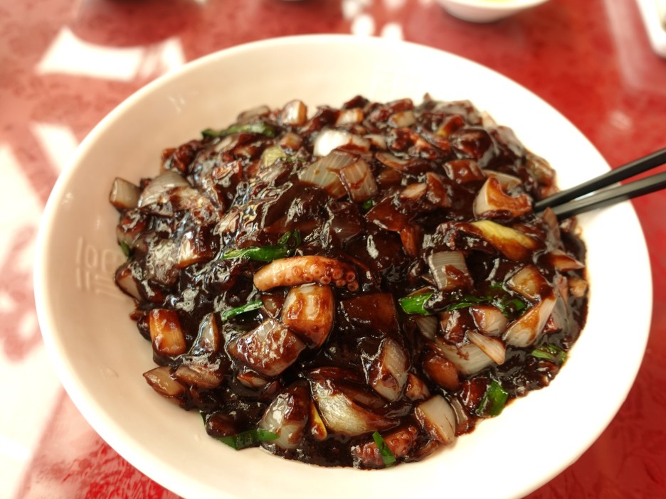 춘장소스에는 각종 해물들과 양파가 들어있었구요. 오랜만에 짜장면을 먹으니 벌써 기분이 좋더라구요. 열심히 섞어보았습니다.