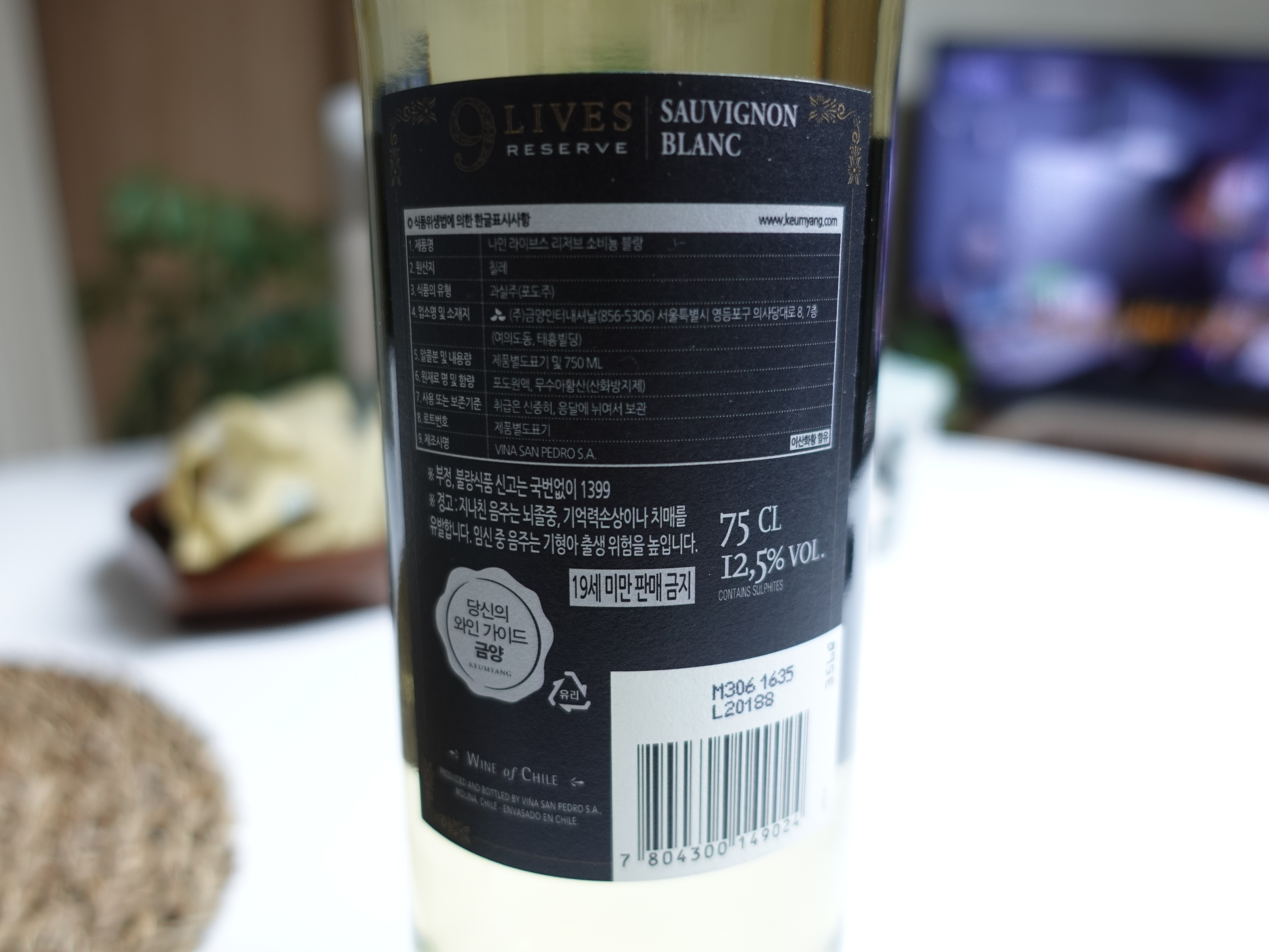 오늘도 역시 이마트트레이더스에서 구매했는데요. 광어를 먹으려고 했기때문에 화이트와인 중에서 소비뇽블랑을 찾고 싶었는데 마침 눈 앞에 나인라이브스 소비뇽블랑이 보여서 바로 구매했습니다.