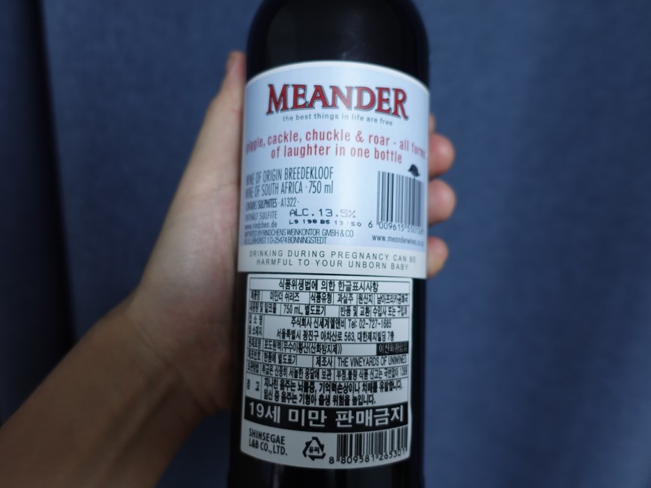 한눈에 딱 봤을때 눈에 띄는 레이블이 있어서 집어보니 남아프리카에서 제조된 와인이어서 궁금함이 앞섰고 특히 제가 쉬라즈를 좋아하기때문에 한번 도전해보자는 마음으로 구매했던 미안더 쉬라즈 와인.