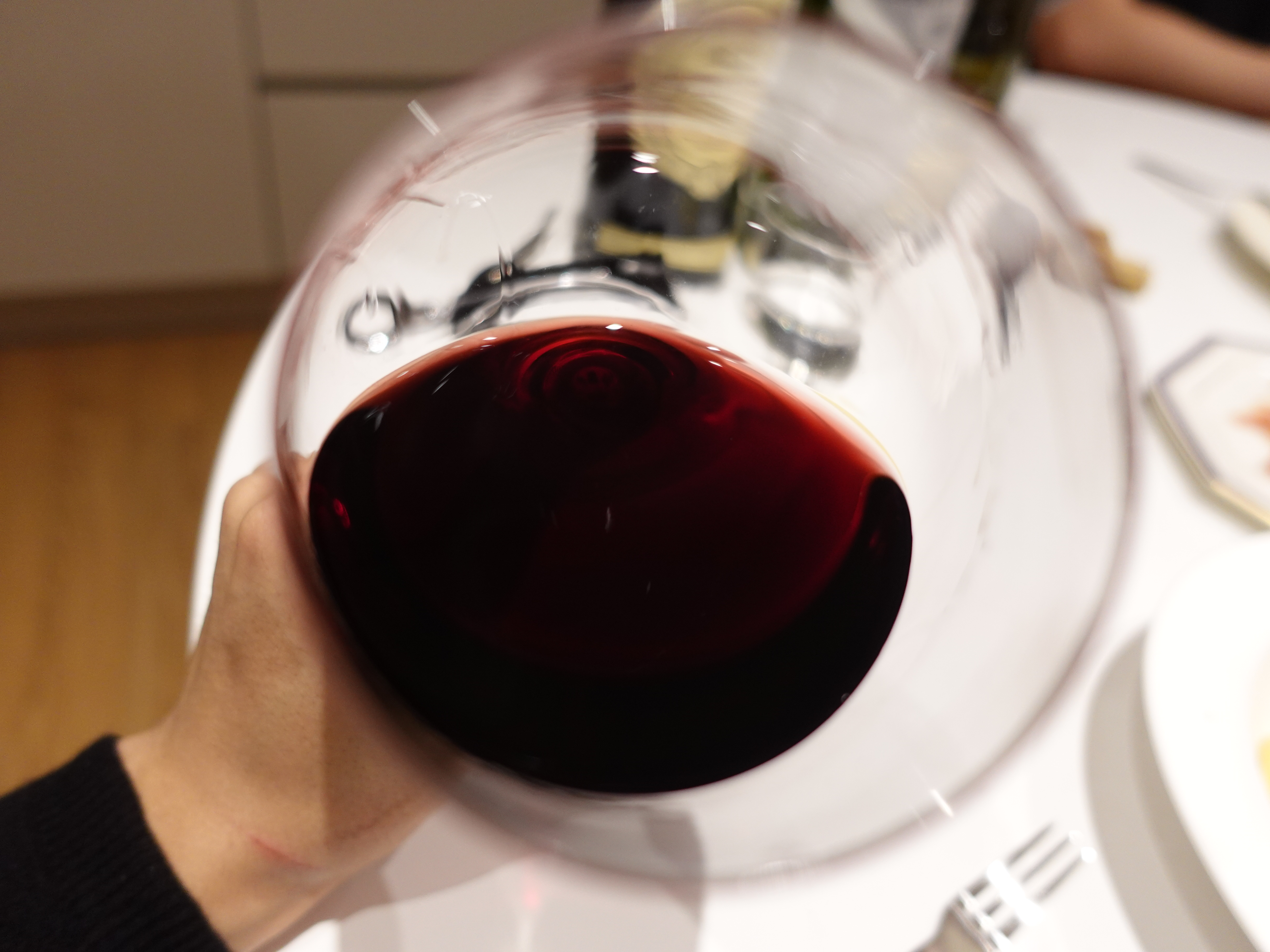 위에서도 말했듯이 와인의 색상을 끝이 적갈색에서 안으로 갈 수록 검붉은 색으로 그라데이션 지는 느낌이었고 투명할줄 알았지만 생각보다 꽤 진해서 놀랐습니다.