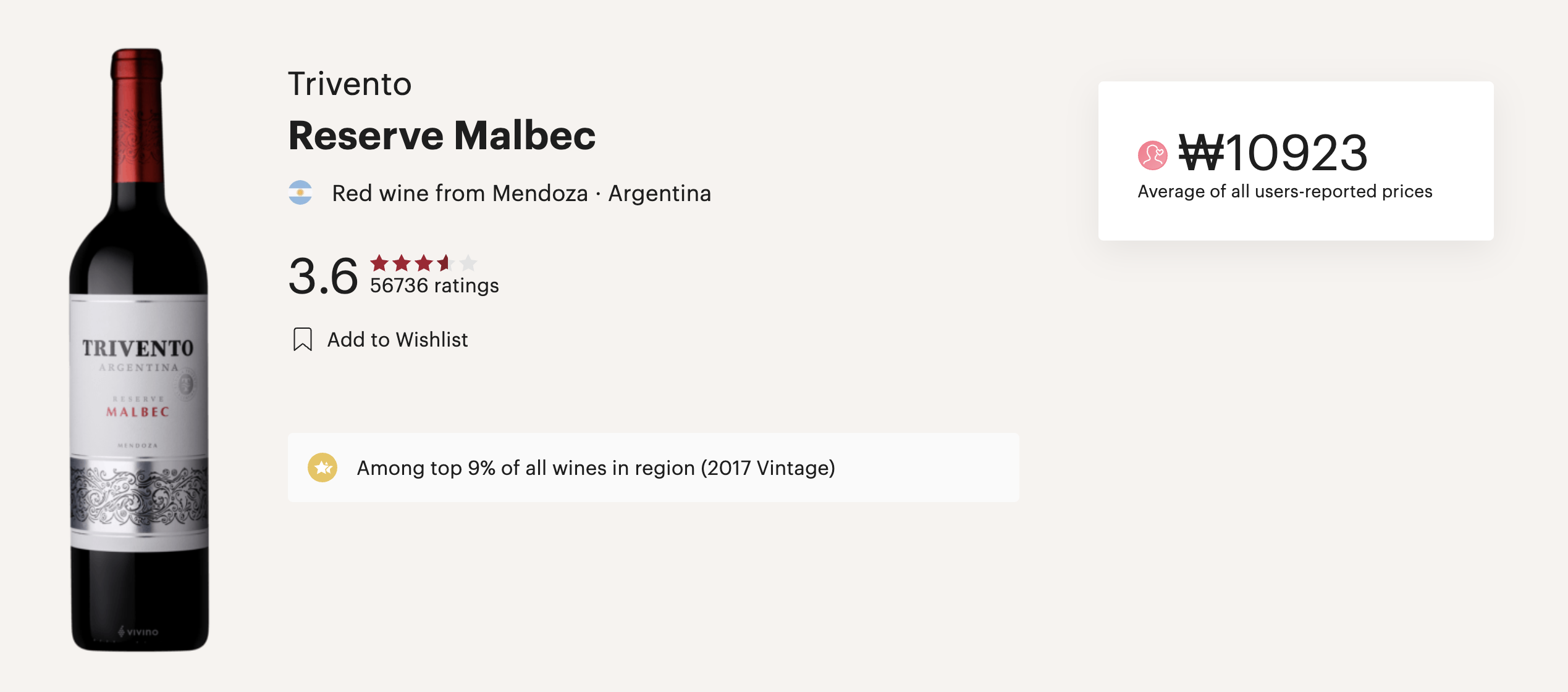 비비노에서 현재 3.6점의 별점을 받고 있구요. 사실 제가 구매한 리미티드 에디션은 따로 별점은 없는 상태였습니다. 별점의 참여한 사람의 수는 56736명으로 엄청나게 많은 사람들이 별점에 참여했구요. 가격은 10,900원으로 엄청나게 저렴한 가격으로 책정되어 있습니다.