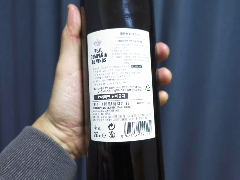 먹었던 와인은 이마트 24에서 구매한 레알 꼼빠니아 드 비노스 뗌쁘라니요 와인입니다.
