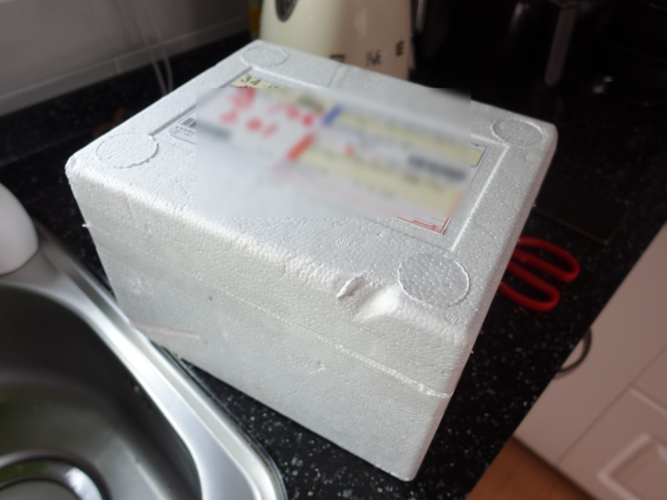 주문을 하면 이렇게 냉동상태로 스트로폼 박스에 포장되어서 배송이 되구요. 저는 하루정도 냉장고에 넣고 자연으로 해동이 되게 만들어 주었습니다.