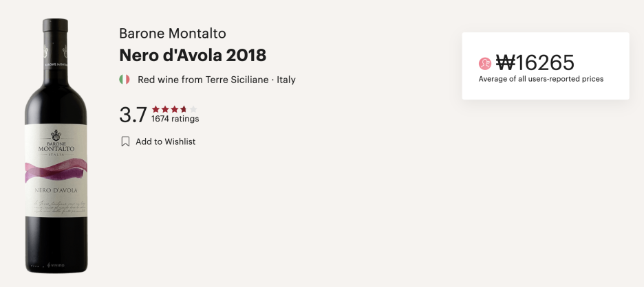 비비노에서는 몬탈토 아키렐로 네로 다볼라 제품은 총 1674명의 사람들에게 평점 3.7점을 받았구요. 많은 사람들의 평가로 평균 별점 3.7 을 받은 와인이라고 볼 수 있겠습니다. 보통은 3.5 별점 이상 와인을 구매하는데 몬탈토 아키렐로 네로 다볼라는 3.7점을 받았네요.