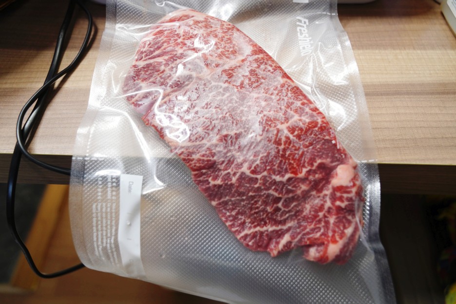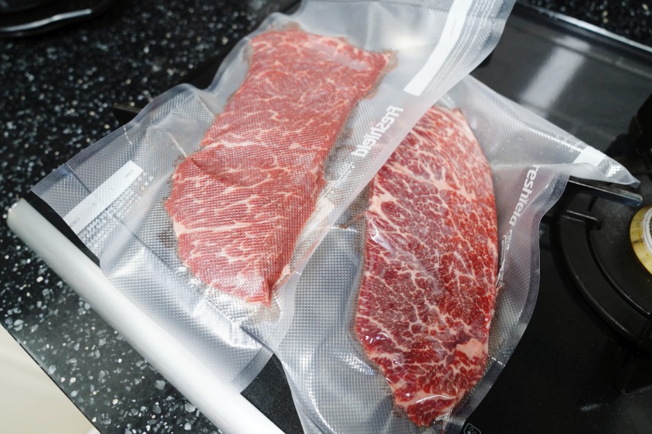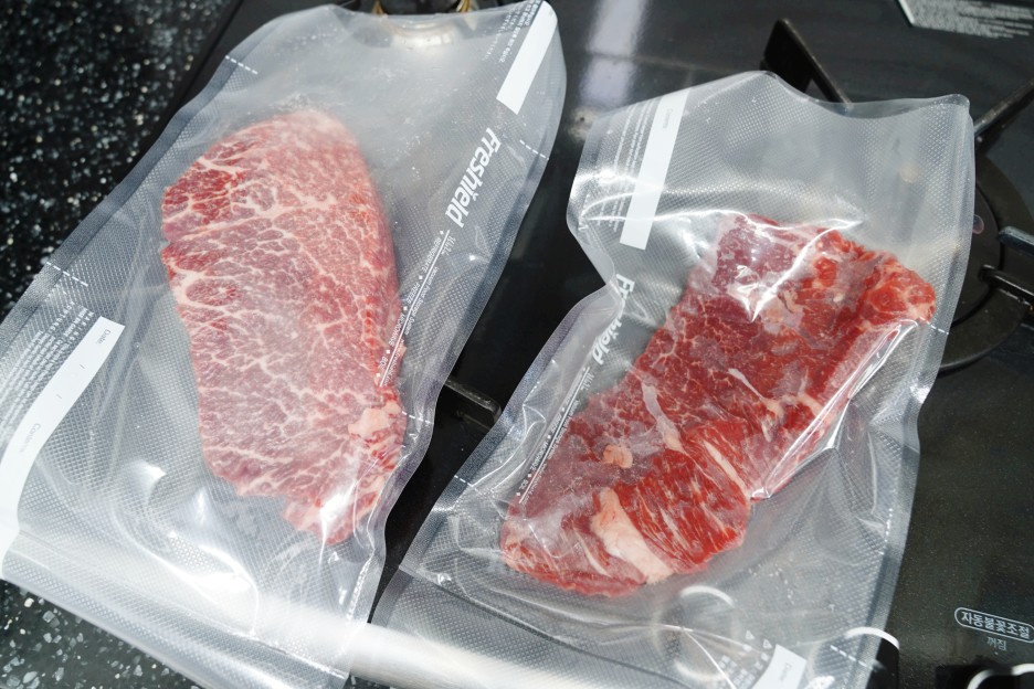 이 날 고기는 이마트 트레이더스에서 1kg 짜리 미국산 살치살을 구매했구요. 가격은 35,600원으로 100g당 3560원 정도의 저렴한 가격으로 구매했어요. 고기는 이렇게 소분해서 당일날 조리하지 않는 고기는 진공포장기로 포장해서 냉장고에 보관해 두었습니다.