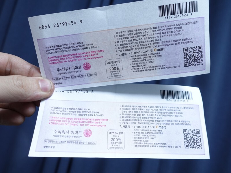 신세계 상품권 10만원 권이고 SSG MONEY 로 전환이 가능하다는 문구가 뒷면에 적혀 있습니다.