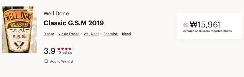 비비노에서 웰던 클래식 G.S.M 2019 제품은 총 10명의 사람들에게 평가를 받았구요. 평균 별점은 3.9을 받은 와인이지만 별점을 리뷰한 사람들이 적어 호불호가 갈릴 수도 있다는 생각이 듭니다.