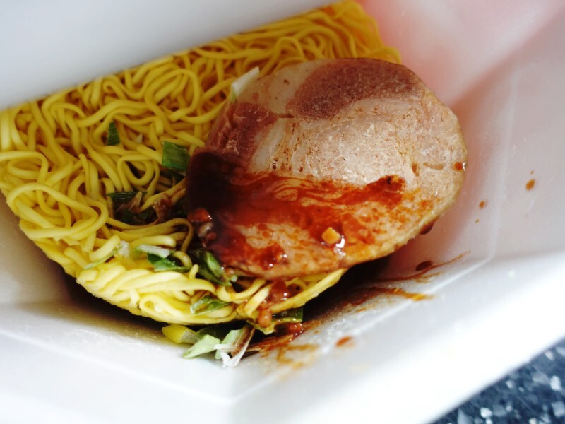 안에 내용물들은 이렇습니다. 주황색 봉지는 파가 들어있었구요. 보라색 봉지가 액체 스프, 나머지는 구운 김과 차슈(돼지고기)로 구성되어 있었습니다.